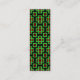 Um modelo de cartão de visita num estilo de marcador útil. Um padrão geométrico abstrato na frente. O design no verso é decorado de cima e de baixo com um padrão geométrico criado de uma fonte de símbolo especial, inserir qualquer string de cinco letras repetidas criará um padrão diferente, então muito divertido de experimentar. Por baixo da decoração no topo, encontra-se a palavra "BOOKMARK" e, por baixo dela, uma grande área de vazio que pode ser utilizada para a junção de pequenas notas. Por exemplo, uma página importante, um parágrafo do capítulo ou referências versáteis a que você pode reenviar. Obviamente muito útil se você está estudando muitos livros. Na parte inferior, logo acima da decoração do rodapé, há campos de texto para o nome de uma empresa e o endereço do site, já que isso também é um cartão de visita e um marcador útil e também é destinado como uma ferramenta de promocional. Embora os dados de negócios e de contato tenham sido mantidos mínimos, o design também pode ser personalizado se forem necessários dados de contato adicionais. Como alternativa, esses campos de texto relacionados a negócios podem ser apagados se os cartões forem destinados exclusivamente como marcadores de páginas para uso pessoal, ou se você puder colocar seu nome e número de telefone ou um endereço de e-mail.