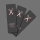 Modelo de cartão de negócios elegante com fundo de cinza escuro e padrão de tesoura rosa claro. Design mínimo e chic. Perfeito para cabeleireiro, cabeleireiro, barbeiro.