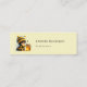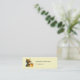 Mini cartões de visitas com uma imagem fofa. Uma garota com uma fantasia de abelha em crochê com uma abelha ao lado dela. Vendo um pote de mel.