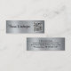 Mínimo de cinza prateada, mini cartão de visita profissional de metal escovado com seu nome em um roteiro na moda ousado. Adicione o endereço de URL do seu site para criar um código de QR digitalizável. No verso, personalize texto adicional (como email, números de telefone, nome firme e endereço de correspondência).