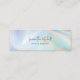 "cartão de visita de fundo holográfico, bonito e pouco claro, tanto para pequenos proprietários quanto para grandes organizações. O design apresenta um moderno, script, tipografia, fontes de tendências e um fundo simples mas com efeito. Perfeito para um belicista ou dono de um salão de beleza, maquiador, criador de fantasias, cabeleireiro ou cosmetólogo." Basta adicionar seu logotipo, nome e detalhes comerciais a esta placa brilhante e moderna clicando no botão "Personalizar" acima. NOTA: Os detalhes holográficos são simulados no trabalho de arte. Não haverá efeitos holográficos reais no brilho quando impresso.