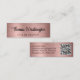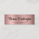 Mini cartão de visita profissional com um fundo metálico falso em rosa de ouro escovado, seu nome em uma escrita em negrito, na moda e seu título ou nome comercial em uma simples tipografia moderna. No verso, insira o endereço de URL do seu site para criar um código de QR digitalizável e personalizar suas informações de contato.