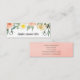 Mini cartão de visita botânico com uma borda superior composta por rosas pintados de cor d'água em pêssego, branco e bege com folhas e seu nome abaixo em um espesso roteiro manuscrito. A parte de trás tem suas informações de contato sobre uma lavagem aquosa de cor de pêssego mole. Esta design é excelente para um designer de interiores, planejador de casamento/evento, assistente pessoal, babá e muito mais.