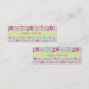 Cartões de visitas magros para levar sua mensagem lá fora. Um cartão de site de empresa com um design de padrão delicioso. Rosquinhas cor-de-rosa com aspersores. Cupcakes de abeberamento da boca, cor-de-rosa e azul, com rosetas e morangos em cima. Algumas macaronas pastel cor-de-rosa e pequenos botões de doces cor-de-rosa também decoram este padrão de cheios doces. Colocado sobre um fundo pastel pálido. Uma faixa amarela com uma borda verde se estende através do centro, onde você pode inserir seu texto com escrevendo facilmente legível.