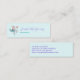 Mini cartões de visitas com uma ilustração adorável. Projetado com uma bonito sereia montando um golfinho feliz. Um pequeno amigo medusa os acompanha. Decorado com pequenos pedaços de ouro falso. Fundo azul claro.