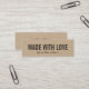 Na moda rustic mini kraft cartão de visita com a palavra "Made with Love" em caracteres negros e um script na moda para seu nome ou nome de loja em cinzas escuras. Este mini cartão de visita é extremamente versátil; você pode alterar a fonte, a cor da fonte e usá-la como um cartão de visita ou anexá-la aos seus itens feitos à mão como uma etiqueta. Este cartão é perfeito para os artesãos e qualquer pessoa que faça bens feitos à mão, como artistas, tricômetros, vestimentas, etc. É fácil personalizar; você pode substituir facilmente o texto do marcador de posição para adicionar suas próprias informações. Para obter mais opções, como alterar a fonte e seu tamanho, clique no botão "Personalizar". *Observe que a Marca d'água Zazzle que aparece na visualização de zoom NÃO aparecerá no produto impresso final © Rosewood e Citrus