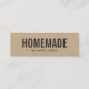 Cartão de visita mini kraft rústico elegante com a palavra "Caseiro" em negrito e uma fonte cursiva estilosa para o seu nome ou nome da loja em cinza escuro. Este cartão de visita mini artesanal é extremamente versátil; você pode alterar a fonte, a cor da fonte e usá-lo como cartão de visita ou anexá-lo aos seus itens artesanais como etiqueta. Este cartão é perfeito para artesãos e qualquer pessoa que faça produtos artesanais, como artistas, tricoteiros, costureiras, etc.