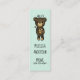 Cartão de visita, orientação vertical com uma simples ilustração de um cartoon marrom segurando uma margarida amarela. Personalize com suas informações, defina um fundo verde pálido.