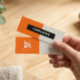 Cartão de visita, tamanho: Mini 7.6 x 2.5 cm, papel: UV Fosco Signature, bordas: Quadrado