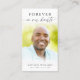 Simple memorial prayer card featuring a cherished photo of your loved one and the sentiment Forever in Our Hearts in modern calligraphy script typography on the front and a suggested prayer or your custom text and optional cross on the back. These cards provide guests with a personal reminder of the one who has passed—something beautiful they can carry or keep close.