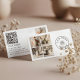 The front features a four-photo square collage to highlight your work, paired with a simple crest design for your business name. A delicate rose illustration adds a subtle decorative touch, and you can customize the design by replacing it with your own image or logo. The reverse side includes space for a QR code, your business name, contact details, and two additional photos, creating a polished, cohesive, and professional look. Perfect for pottery artists, handmade businesses, online shops, and creative professionals seeking a memorable branding solution that is both minimal and elegant. Designed by © Moodthology Papery.