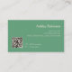 Cartão De Visita Minimalist boho leaves frame pastel green QR code