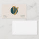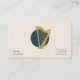 A minimalist business card featuring a stylized harp illustration in a soft gold color, on a forest green circle. A great option for harpists, musicians, teachers, instructors, and concerts.