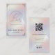 Modern QR code business card for yoga studio, pastel holographic business card, minimalist wellness branding, luxury feminine business card, yoga teacher marketing card.
