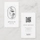 The vertical layout and clean typography create a luxury boutique feel, while the integrated QR code allows clients to quickly access your booking page, website, or social media profiles.