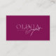 This premium, double-sided business card immediately conveys luxury and sophistication with its rich, all-over field of deep magenta. The front showcases an exclusive, signature font combination of elegant script over modern serif for a distinct brand identity. The reverse side is cleanly organized, providing comprehensive contact information, a stylized QR code, and social media icons for effortless connection.