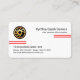 An all white cover is accentuated by a pair of red lines at the top and bottom levels of the card. Your prestigious name, the job title and a global logo you can use are at the top. The global logo is a rotating tire rim. Below the gold logo are your business name and contact details.