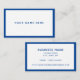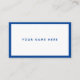 Esses cartões de visitas apresentam design mínimo em azul e branco. Personalize o texto com suas informações.