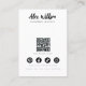 Esta placa de joalharia apresenta um desenho minimalista e simplificado de cabelos e lábios longos e ondulados fêmeas, desenhados em preto e branco para um visual simples, limpo e elegante. Inclui pontos para mostrar brincos nos ouvidos. O cartão é personalizável com seu nome, site, slogan e ícones de mídia social, além de um código QR para fácil acesso digital. Esta placa de joalharia possui um design minimalista e elegante, moderno e moderno, perfeito para uma joalheria artesanal que aprecia o estilo minimalista.