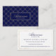 Cartão de visita elegante e real projetado em um esquema de cor azul e ouro falso e marinho profundo. Lindos estilos de tipografia são combinados para criar um na moda e um design sofisticado. Um fundo azul marinho profundo exibe elegantemente um padrão geométrico geométrico geométrico geométrico de confetti em ouro na moda faux com o nome da empresa exibido dentro de um quadro retangular em ouro falso elegante. O verso é projetado em um estilo limpo e mínimo com uma borda de ouro falso elegante e personalizado com informações de contato. Você pode personalizar o tamanho do texto, a fonte, as cores e a cor do plano de fundo para se adequar à sua própria preferência pessoal.
