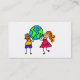Ilustração lunática dos desenhos animados bonitos de uma figura pequena feliz menino e menina da vara que mantêm o mundo unido. Facilmente personalize e escolha sua própria cor do fundo ou adicione o texto. Imagem disponível em vários presentes e produtos.