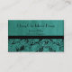 Represente seu negócio com estes cartões de visitas elegantes e chique personalizados. 100% personalizado. Use o modelo do texto para introduzir e/ou adicionar todo o fraseio necessário pôr seus nome e imagem do negócio sobre seu próprio cartão pessoal. Um absolute essencial para que ajudar leve seus negócio e nome ao nível seguinte de profissionalismo. Os cartões caracterizam um fundo lavado do verde do aqua com um redemoinho do teste padrão da característica do damasco na parte inferior. Os cartões são frente e verso com um fundo lavado coordenado do verde do aqua na parte traseira.