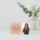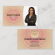 A design apresenta um fundo espiral pastel, espaço para fotos com nome e ocupação na frente. O verso inclui um design de fundo coordenado, um coração tridimensional e campos de texto para o nome e os detalhes da empresa. Substitua a foto do espaço reservado pela sua fotografia no formato vertical. Preencha os campos de modelo ou clique em personalizar para selecionar um estilo de fonte, tamanho e cor desejados.A foto do marcador de posição é cortesia em pixabay.com.