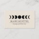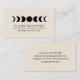 Cartão de visita elegante com um simples e moderno design com fases na lua sobre um fundo bege. Este cartão de visita é excelente para um massagista terapeuta, saúde e bem-estar, serviços holísticos ou medicina alternativo.