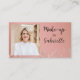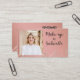 A chic and modern business card design for makeup artists and beauty professionals. This layout features a dusty rose background with leaf accents and elegant script typography. Perfect for salon owners, bridal makeup artists, and beauty consultants seeking a stylish, professional brand identity. Add your photo, QR code and business info for a personal touch.