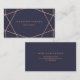 Cartão De Visita Modern Faux Rosa Dourado Geométrico em Azul à Meia