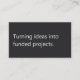 A modern, minimalist business card perfect for fundraising consultants / grant writing professionals. The front features a slate grey background with the phrase "Turning ideas into funded projects" in soft white text. The reverse has a soft white background with slate grey text and space for your contact details. All text on the card is fully editable.