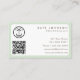 A modern minimalist light green and brown business card design incorporating your details, business logo and your QR Code. This elegant business card is ideal for all types of professions. A simple and professional way to introduce your business. Personalize your details to create your own unique business card. A perfect business card for anyone.