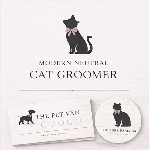 Cartão De Visita Modern Neutral Cat Grooming