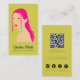 Cartão De Visita Modern Pink Lime Green Hair Styling Flat Design QR
