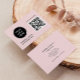 Enhance your professional presence with this Modern and Simple QR Code Logo Business Card featuring a blush pink hue and minimalist black design. Tailor it with your logo, QR code, company or business name, website, social media handles, and job title for a sleek appearance. It's a convenient way to promote your business. Customize and order your business cards online effortlessly.