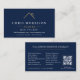 Cartão De Visita Modern Roofer Navy Blue Gold QR Code