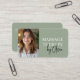 Create a calming, professional first impression with this sage green massage therapist business card featuring space for your photo and a scannable QR code for easy online booking. The soft sage palette evokes wellness, relaxation, and trust—perfect for massage therapists, bodyworkers, estheticians, and holistic wellness providers. Clean typography keeps your name, title, and contact details clear, while the photo area adds a personal touch that helps clients connect instantly. Fully customizable—update your image, QR code, colors, and details to match your branding. Print-ready and designed for a polished, modern look that stands out.