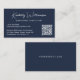 Professional dark blue business card featuring your name in a chic white script and your title and contact information (such as email, telephone numbers, firm name and mailing address) in clean, simple white lettering. Input a URL address to create a scannable QR code linked to your website, social media profile, or other platform that showcases your work, making it easy for others to explore your expertise. Personalize additional text on the back or leave blank.