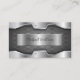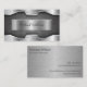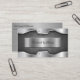 Um cartão de visita profissional com acabamento de metal prateado, personalize com suas informações.
