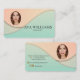 Make a beautiful first impression with this elegant makeup artist business card, perfect for bridal, editorial, and special event specialists. The design features a stunning soft pastel gradient with fluid, layered waves in peach and mint tones. It includes a prominent oval photo placeholder to showcase your professional headshot or a close-up of your best makeup artistry.