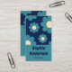 Cartão De Visita Modern Teal Blue Retro Floral Pattern with QR Code