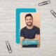 Cartão De Visita Modern Teal Photo QR Code Connect With Me