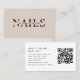 Moderno, castanho claro, Cartão de visita de código QR - Disponível em 18 cores. Este elegante e profissional design de cartão de visita apresenta uma tipografia ousada e um código de QR personalizado, perfeito para os atuais empreendedores digitais-primeiros. Ideal para profissionais de beleza, técnicos de unhas, artistas de lash, cabeleireiros, maquiadores e especialistas em bem-estar. Personalize facilmente seu nome, título, detalhes de contato e código QR para vincular ao seu site, página de reserva ou perfil Instagram. Impresso em estoque de cartão de alta qualidade, este design está disponível em 18 opções de cores impressionantes - incluindo preto, rosa esbranquiçado, branco, bege e e muito mais - para corresponder ao estilo de marca ou salão. Saia e fique conectado a uma placa que é
