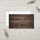 Um cartão de visita profissional e moderno, com um fundo de madeira marrom rústico. © 1201AM DESIGNS