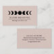 Cartão de visita elegante com um simples e moderno design com fases na lua sobre um fundo de massas. Este cartão de visita é excelente para um massagista terapeuta, saúde e bem-estar, serviços holísticos ou medicina alternativo.
