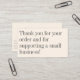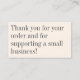 Mostre seu apreço em estilo com este obrigado preto e branco minimalista moderno. Um lado apresenta uma mensagem sincera "Obrigado por apoiar uma pequena empresa", enquanto o outro lado é totalmente editável para incluir suas informações de negócios. Esta placa profissional moderna é perfeita para adicionar um toque pessoal às encomendas, às interações com os clientes ou às marcas de pequenas empresas. O design simples e limpo garante que sua mensagem se destaque enquanto mantém uma estética polida e moderna. Ideal para pequenas empresas que buscam uma maneira elegante de se conectar com os clientes.