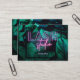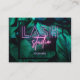 Adicione seu nome e informações de contato a este moderno estúdio de lash/cartão de visita de extensão de pestanas, com folhagem verde-escura tropical e uma moldura azul-da-noite. As palavras "Lash" e "studio" estão em tipografia neon roxa e rosa com seu nome embaixo, e seus detalhes de contato na parte traseira do cartão. Entre em contato com o designer se você quiser uma cor diferente nos textos neon.
