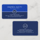 A blue shades layered cover is demarcated by a thin white line near the card's center. Resting on this line is your name initials-monogram inside a white circle. At the top of the card is your prestigious name and job title with the contact details southwards at the base.