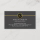 An all dark grey is accentuated by a gold line near the top of the card that houses your name initials-monogram inside a gold circle.