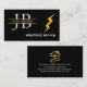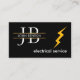 An all black cover is accentuated by a placard with faux gold borders near the top of the card. Here lies your monogram letters alongside your prestigious name. Near the base you have the business name "electrical service" with a yellow lightning at the top. Both the gold borders placard and this lightning can be moved anywhere across the card's face.